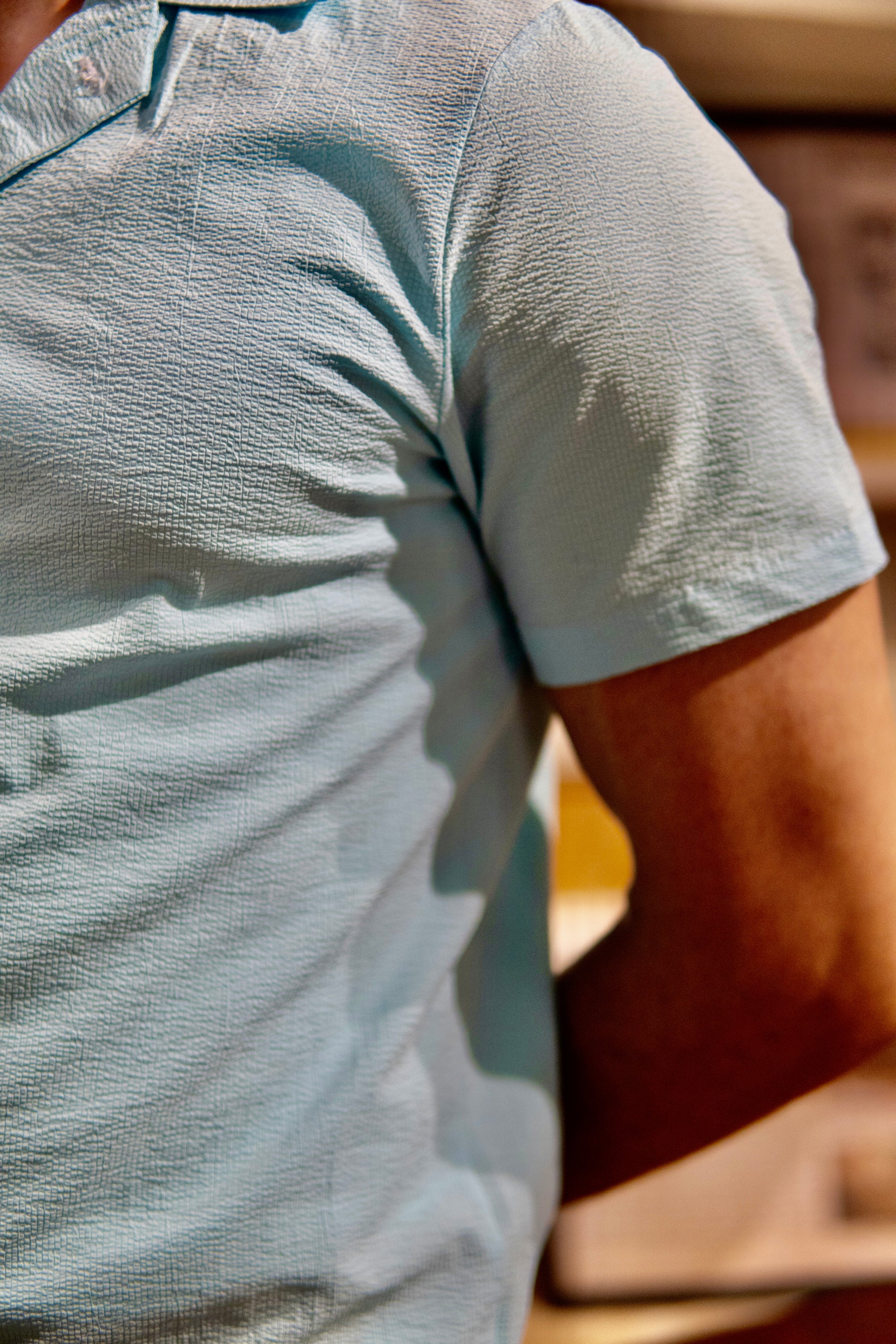 Blue Signature Knitted Cuban Shirt for Men – 100% Polyester