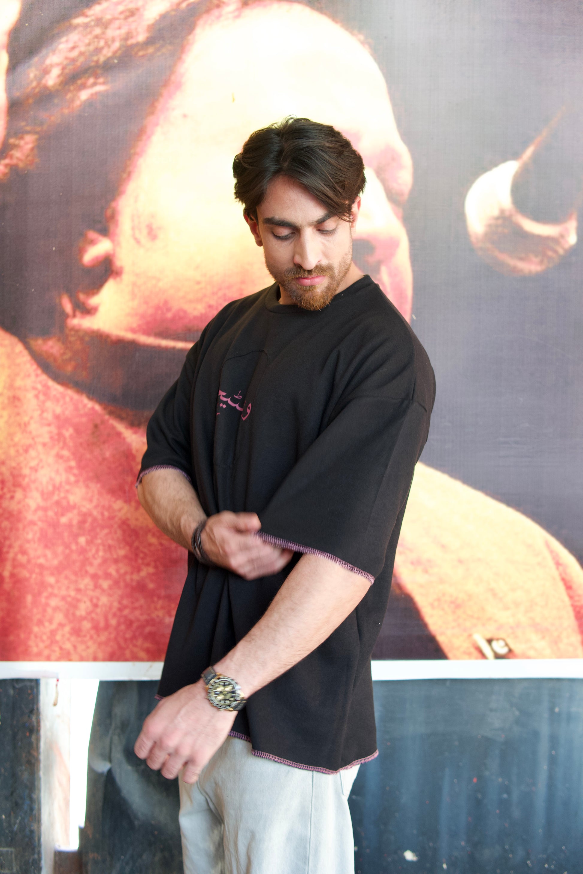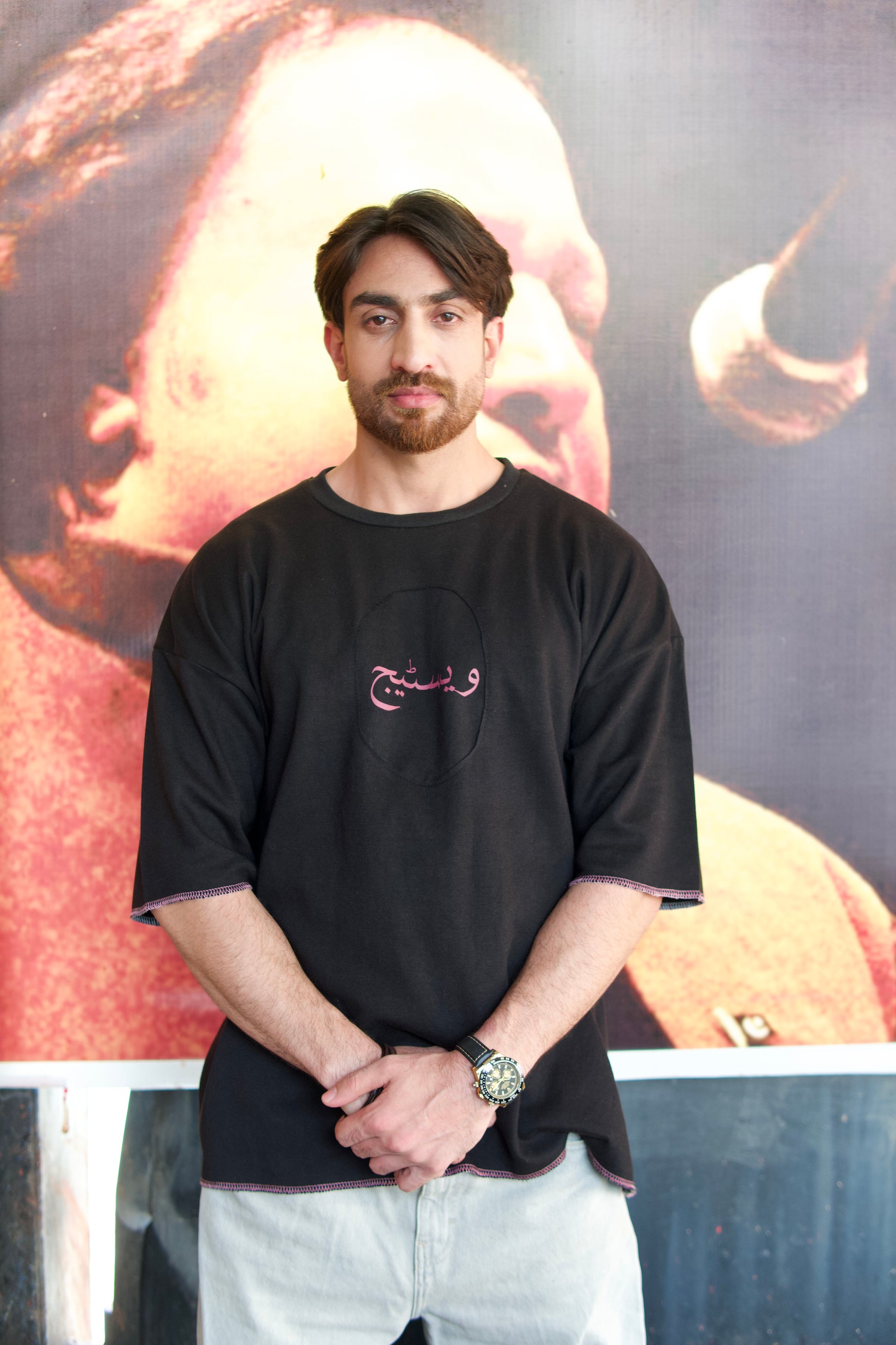 "Rashq-e-Qamar" drop shoulder shirt by Vestige Apparels designed with an oversized fit and inspired by the cultural soul of Androon Lahore. Crafted from soft and breathable cotton fabric, featuring a detailed Lahore city map printed on the front and bold "Rashq-e-Qamar" typography on the back. Perfect for streetwear lovers who value heritage and modern design. Drop shoulder construction adds extra width and comfort for a relaxed silhouette.